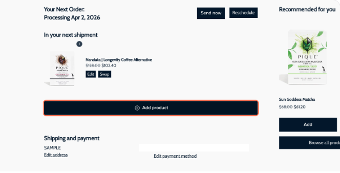 Frequency: Choose One time only (to add it to your next shipment only) or As a subscription (to have it included in every renewal).