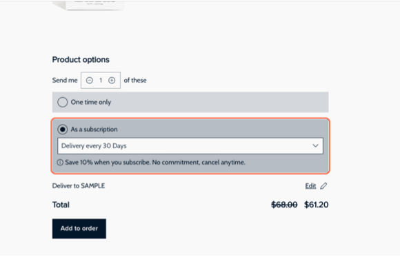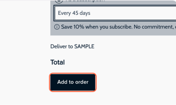 If you select As a subscription, choose how often you’d like it delivered (e.g., Every 30, 60, or 90 days) to save 10%.