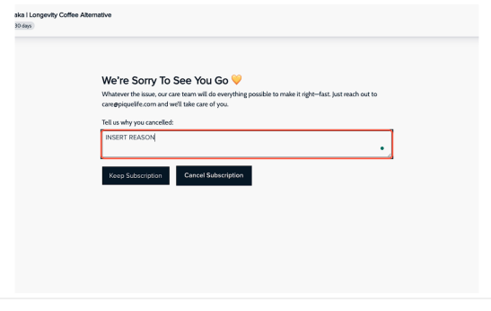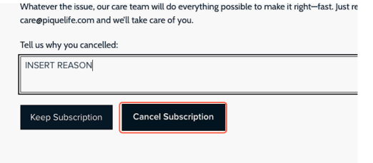 - For all other questions, please message us at care@piquelife.com.