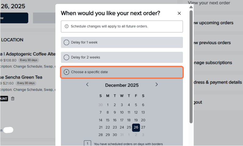 - Subscriptions must be managed before the subscription processing date. Adjusting on the same day WILL NOT stop an order if it has already been processed, which is why we send reminder emails 3 days before processing with direct links to manage your subscriptions. To make a return, please refer to our RETURN POLICY page.