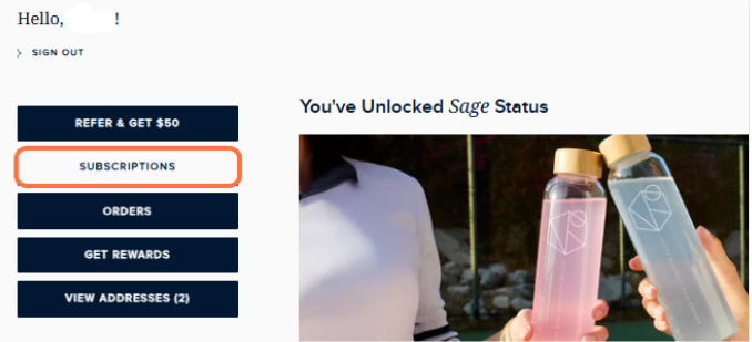 - Log in to your subscription manager account. You can access this through our confirmation emails, or by logging into your account on our website and clicking SUBSCRIPTIONS.