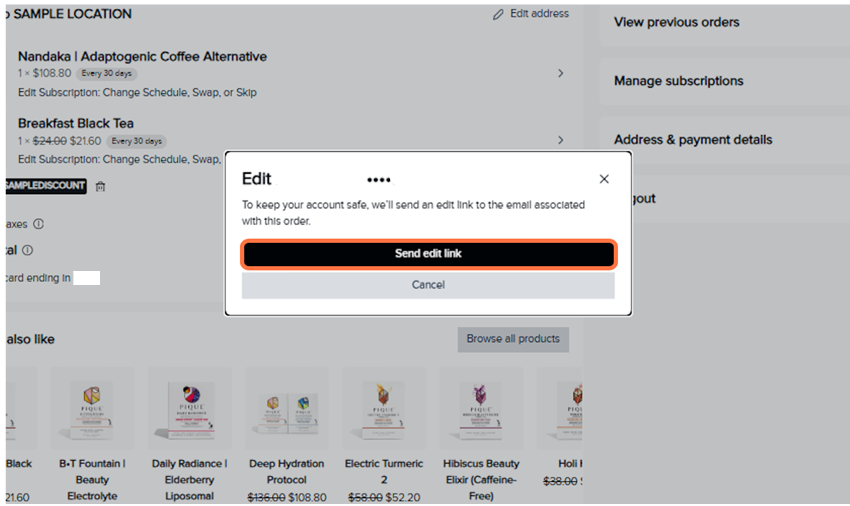- If your order has already been processed, please contact us at care@piquelife.com. While we’ll do our best to assist, please note that we cannot guarantee stopping an order once it’s been processed, as Pique orders are charged and shipped out quickly.