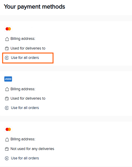 - If you have multiple subscriptions and you'd like to use the new card moving forward, please click Use for all orders.